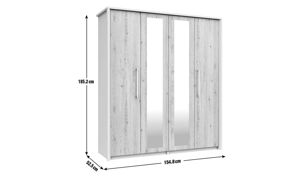 Fall for the charms of our Lancaster collection. This 4-door mirrored wardrobe boasts natural-looking textured grain fronts, with a contrasting carcass. Its dark tone will bring richness and warmth to your space. The mirrored front...