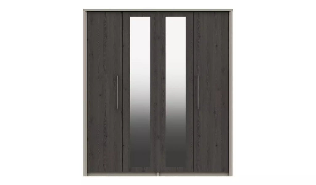 Modern Dark Grey Lancaster 4-Door Wardrobe with 2 Mirrors